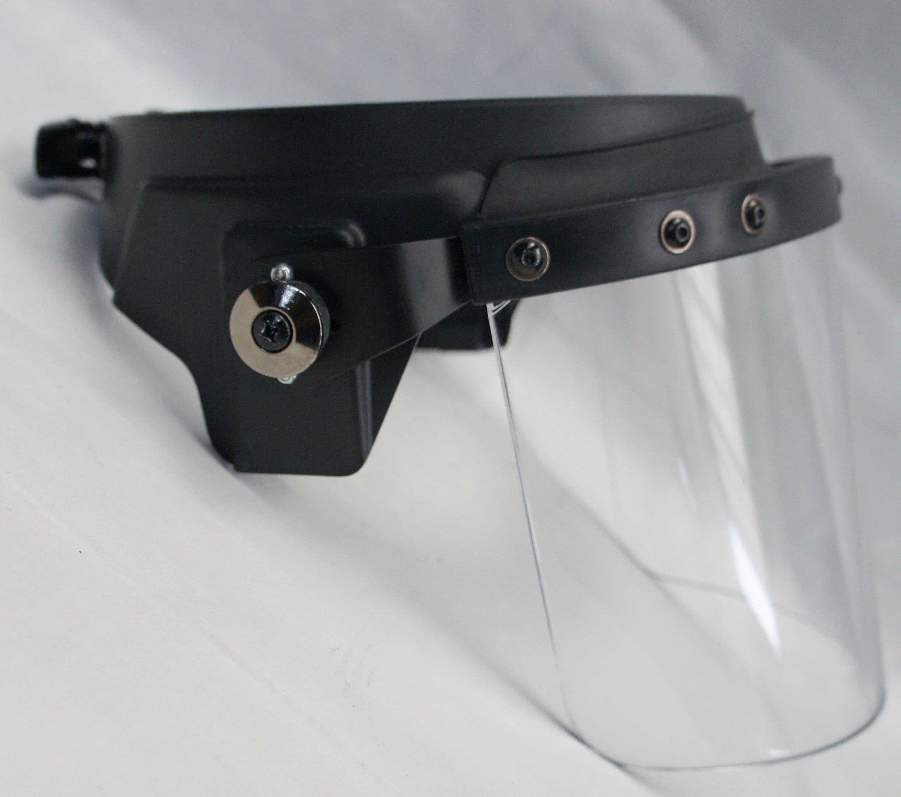 Lastly, we carry a ops-core ultimate defense multi-hit handgun face shield. This face shield is designed specifically to be compatible with our Ops-Core helmets. It is capable of stopping many projectiles that could be thrown your way. A tough face shield is a necessity if you are going into a possible riot situation.