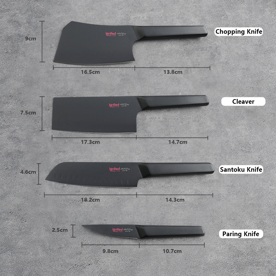 IGNITED CUTLERY 5-Piece Kitchen Knife Set with Block – German 1.4116 Steel, BO Antibacterial Coating, Includes Chef’s Knife, Santoku, Utility, Cleaver & Wooden Stand