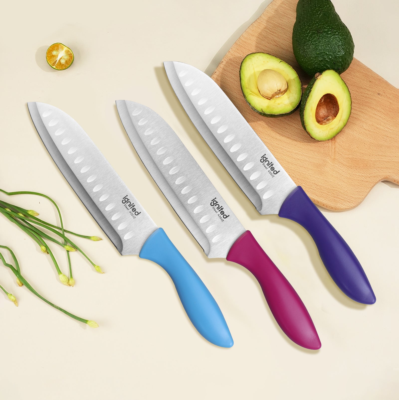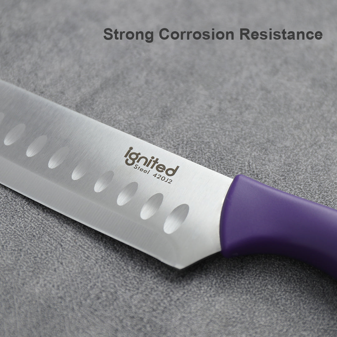 IGNITED CUTLERY Santoku Knife – Japanese 420J2 Stainless Steel, Non-Stick Hollow Edge, Ergonomic Multi-Color Handle – Only $6.9 with Free Shipping!