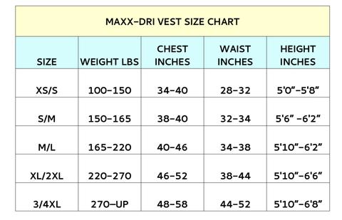 Sizing for the Maxx-Dri Vest 3.0 is now better than ever. With the fully adjustable Velcro side-closure system you can adjust the fit of your Maxx-Dri Vest to the exact snugness you desire. NOTE: We recommend your Maxx-Dri Vest be worn like your body armor; lightly-snug...not tight.