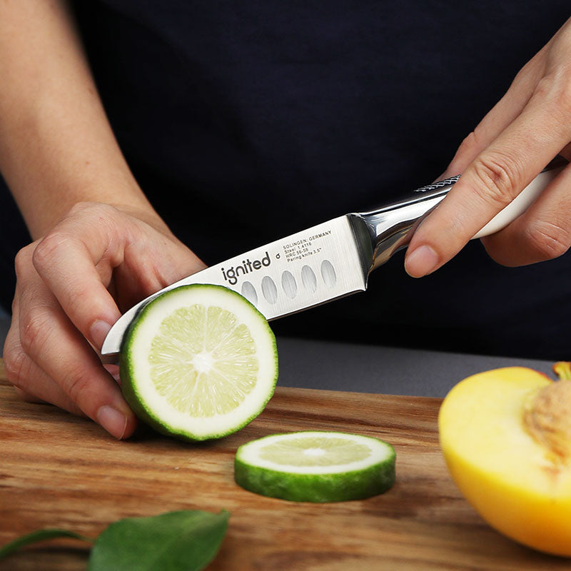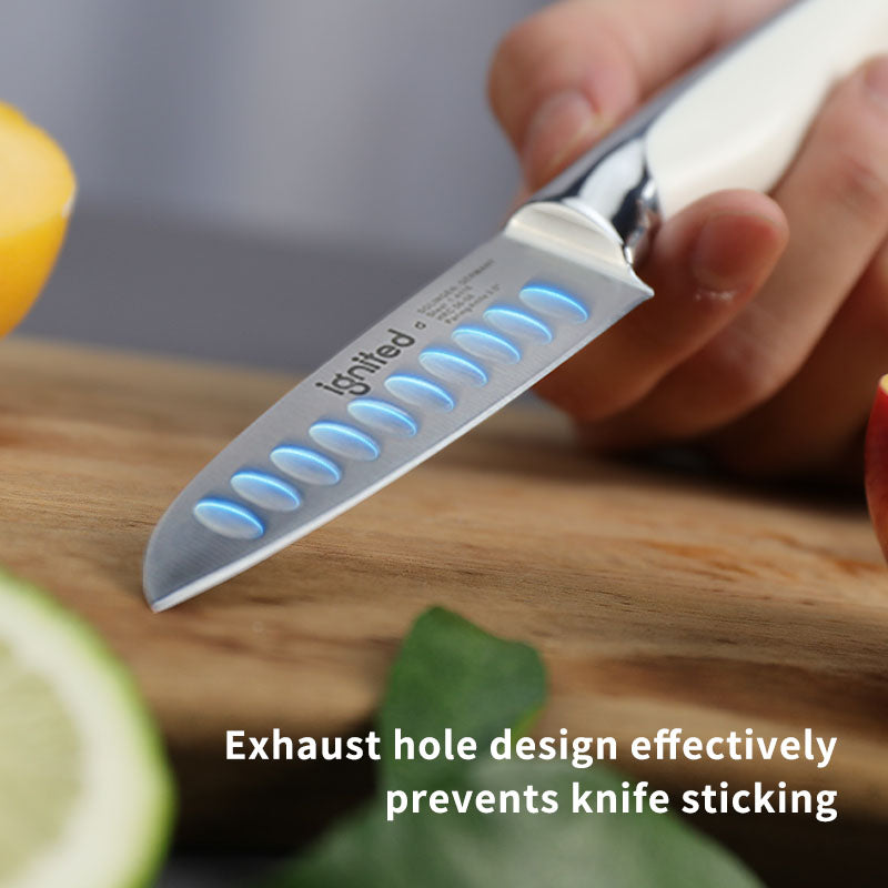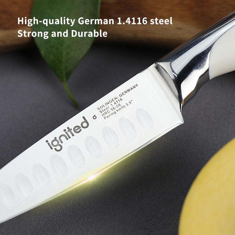 IGNITED CUTLERY 3.5" Paring Knife – German 1.4116 Steel, Hollow Edge Blade, Ergonomic “Penguin Belly” Handle, Decorative Anti-Slip Grip