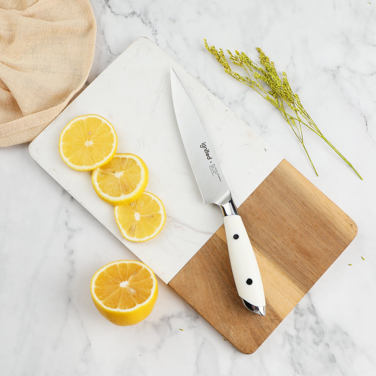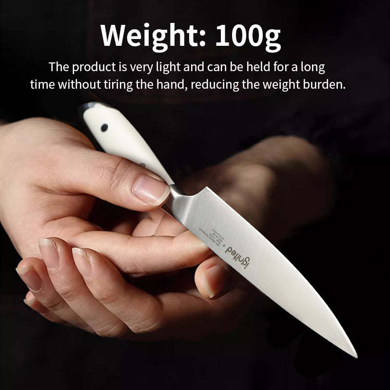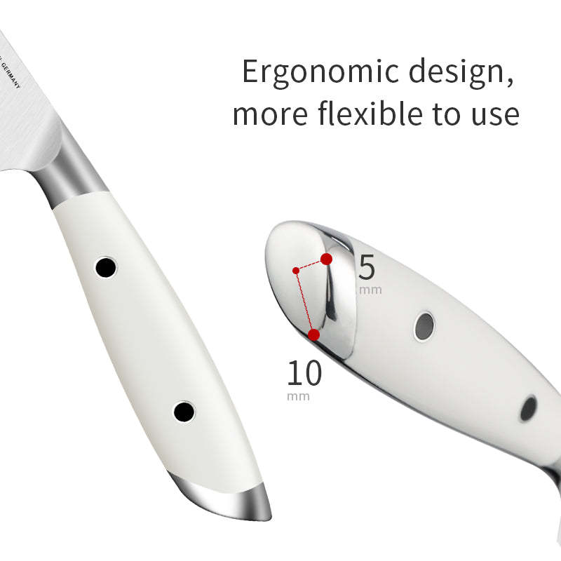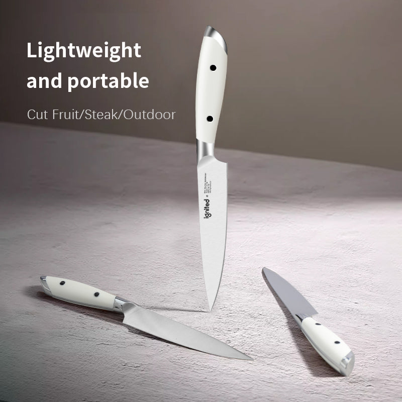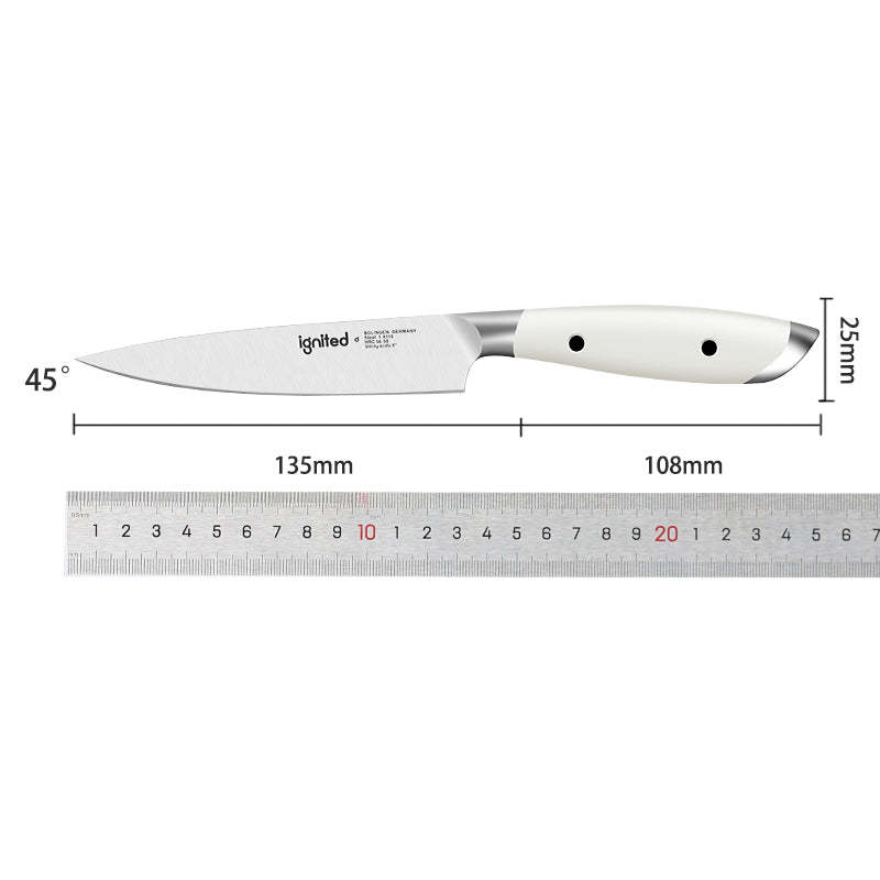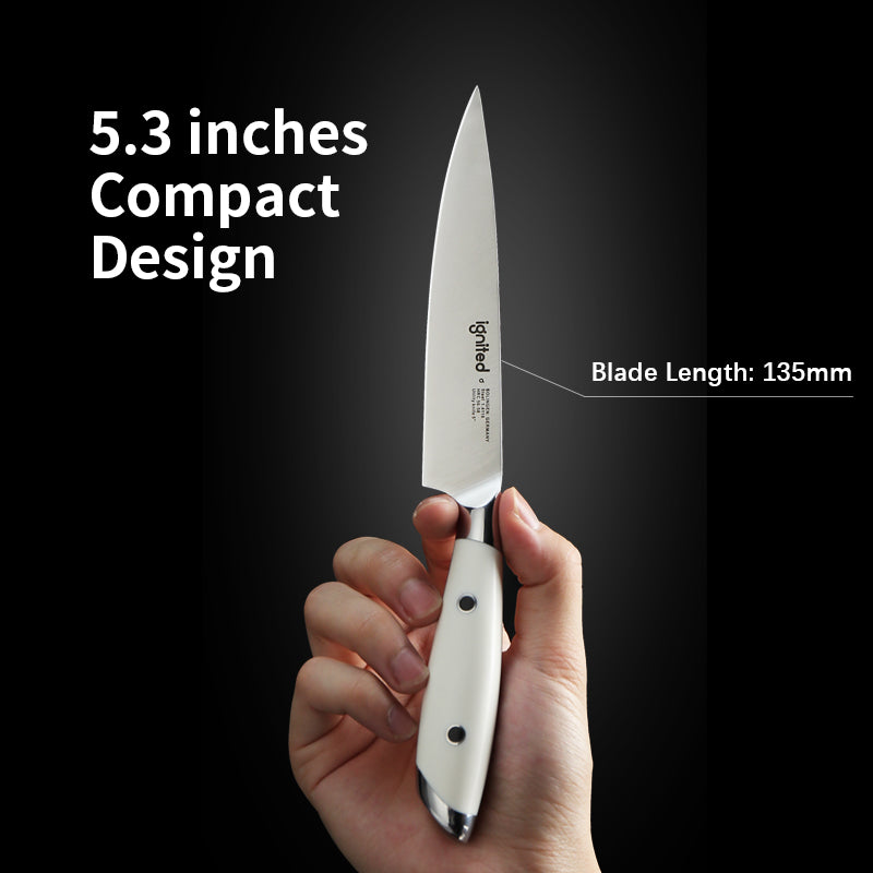 IGNITED CUTLERY 5" Utility Paring Knife – German 1.4116 Steel, Triple-Rivet White ABS Handle, 58 HRC Hardness, Multi-Purpose Precision Blade