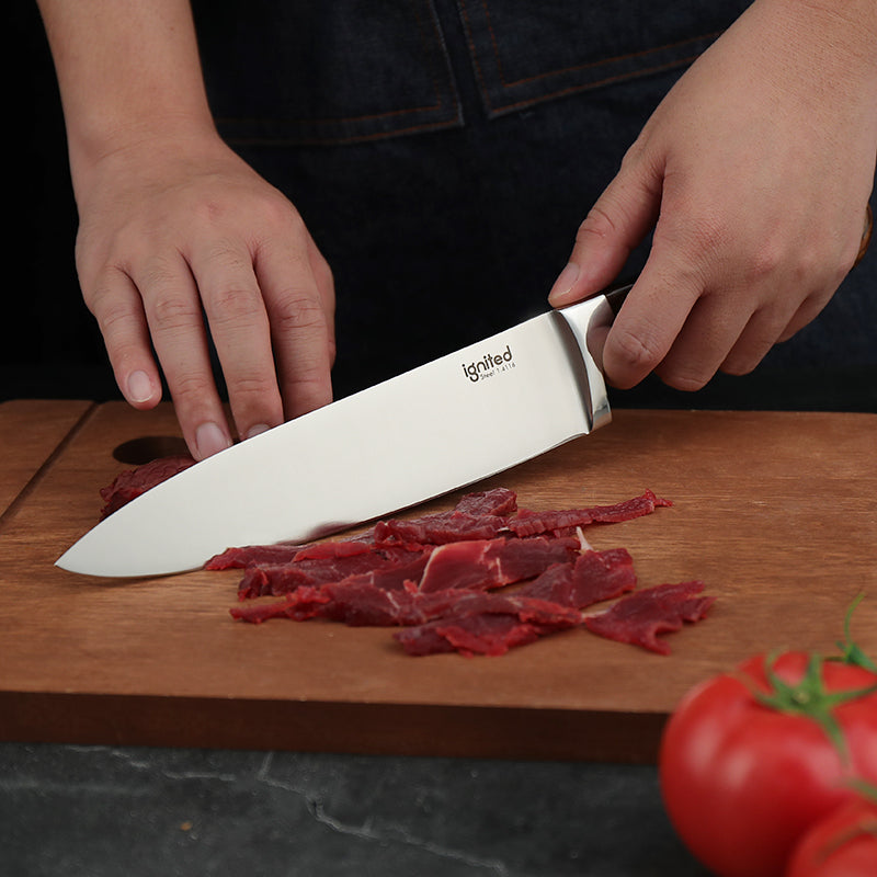 IGNITED CUTLERY 8" Western Chef Knife – German 1.4116 Steel, 15° V-Shaped Edge, Ergonomic Olivewood Handle, 58 HRC, High-Aesthetic Design