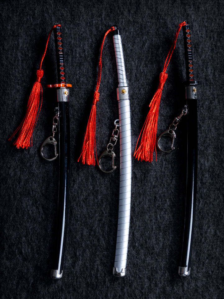 Step into the world of Demon Slayer with this epic keychain bundle, featuring the swords of the most determined apprentices in the Demon Slayer Corps! Each mini katana is crafted from real metal for durability and comes with an auto-eject mechanism that locks the blade in place until you're ready to unsheath it.