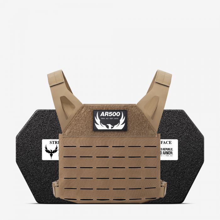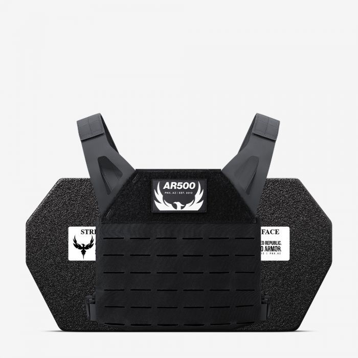 The Freeman is sold as a complete body armor package of carrier and two armor plates of AR500 Level III flat plates with base coat of AR500 proprietary FragLock™ coating. Plates can be upgraded to multi-curve and AR500 build-up FragLock coating for a slight upcharge.