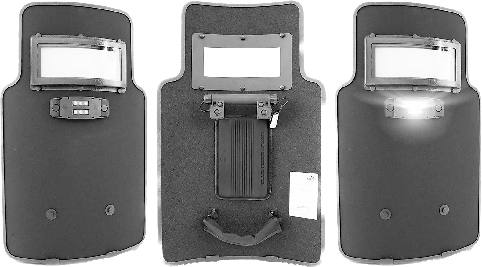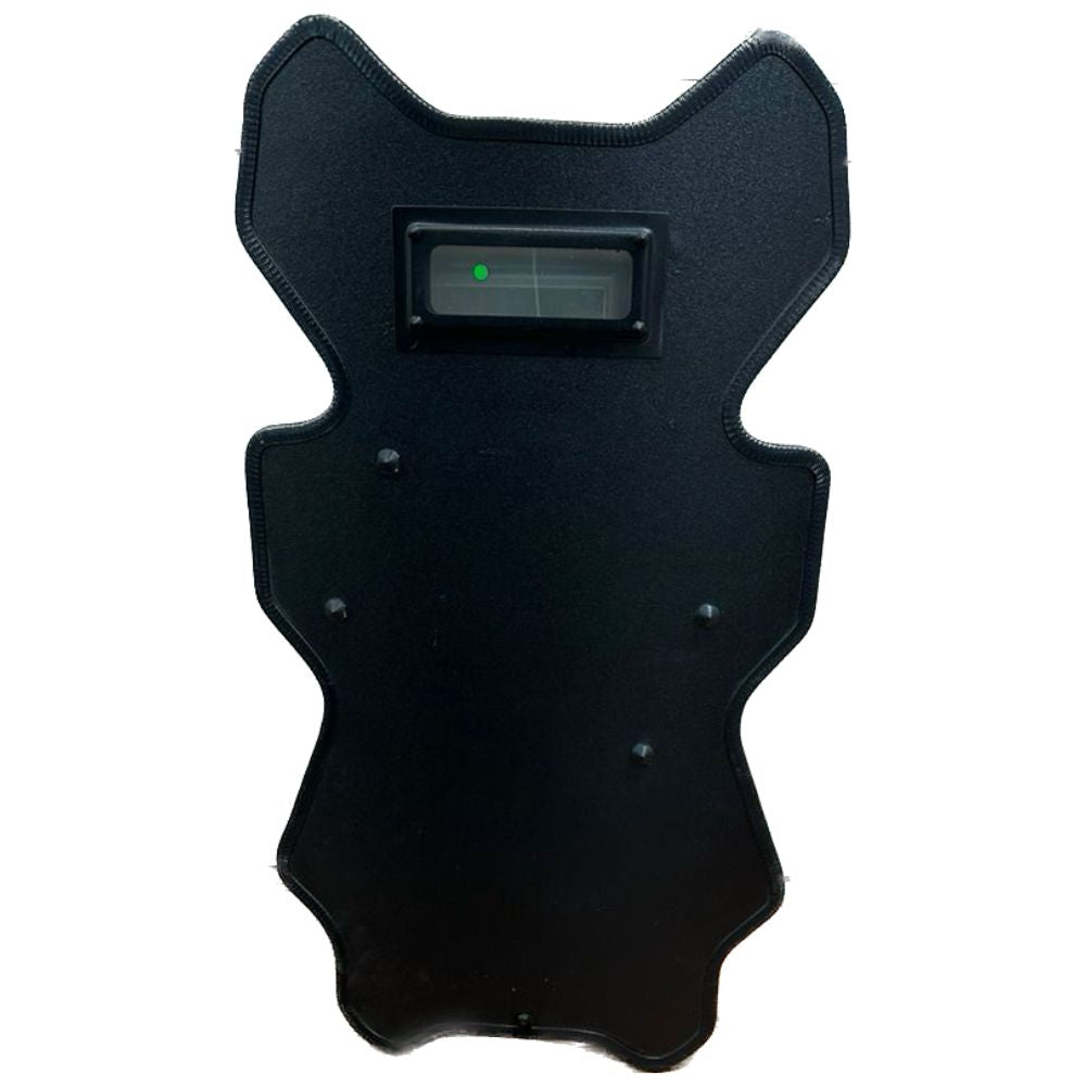 - Non-flexible level III+ (3+) armor shield with accessories attached