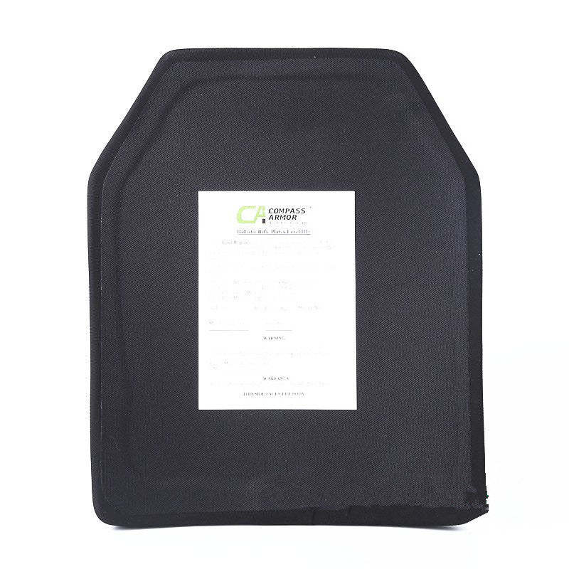 Nominal 10x12 inch single curve body armor insert with cropped top corners.