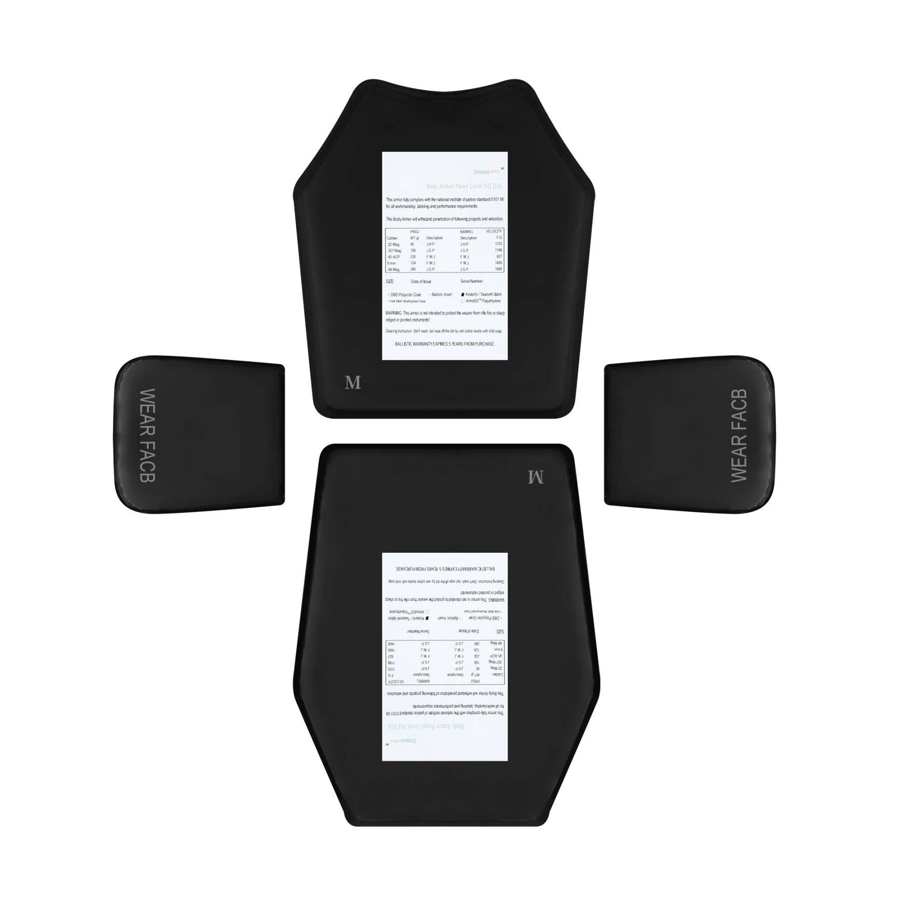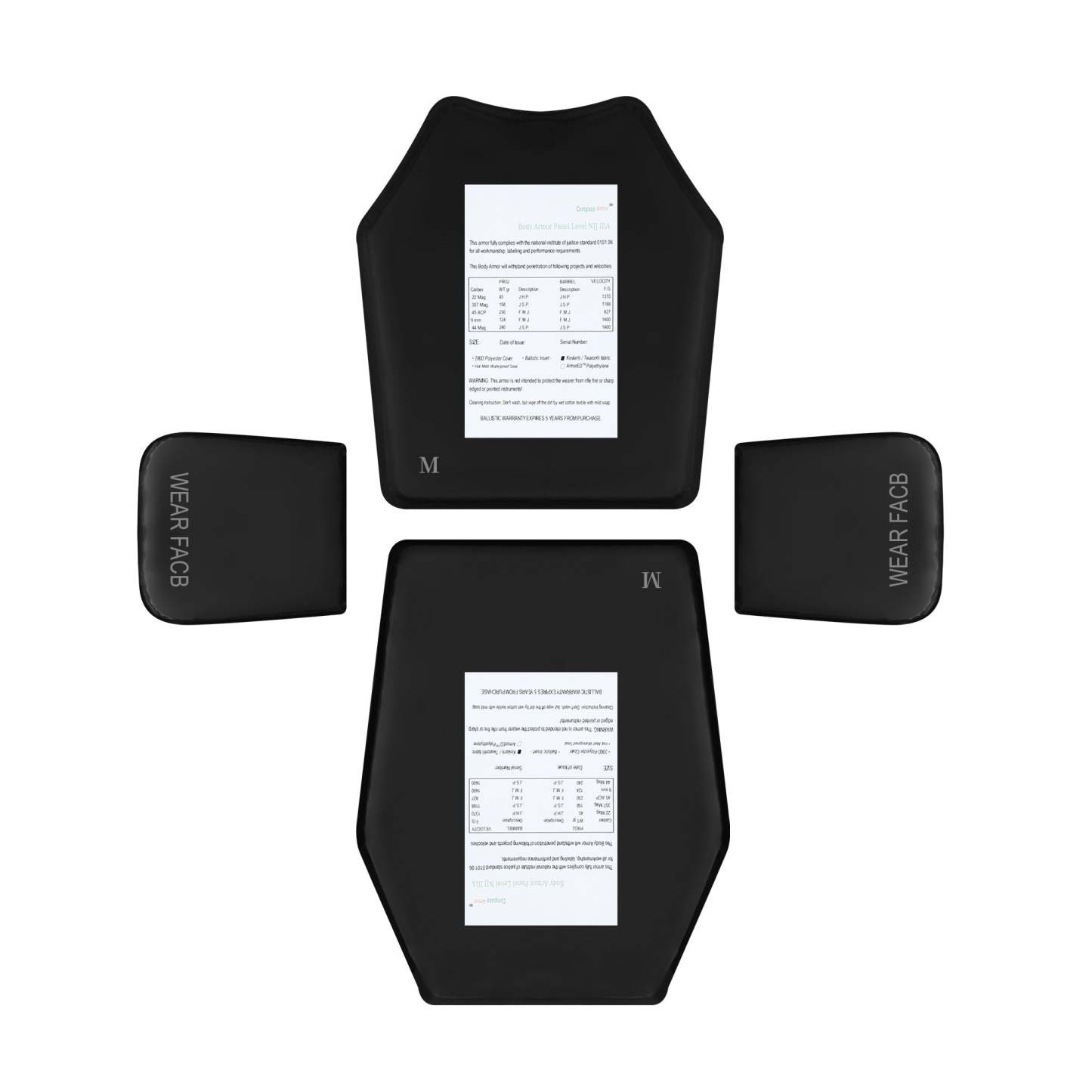 Ballistic body armor Panel Material: Armored aramid T-shirt fabric; Front & Back protection;