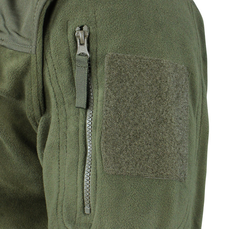 Wear the Alpha Fleece Jacket from Condor Outdoor whenever you must stay warm without feeling weighed down. The Condor Alpha is designed to be lightweight while providing superior breathability, comfort, and warmth. Equipped with an abrasion-resistant collar and elbows, it has the durability you require for outdoor activities or field operation. This Condor fleece jacket also includes plenty of pockets for storage, including a convenient upper arm pocket. The sleeves feature an extendable cuff with thumb holes for added hand warmth without the need for gloves. Use the drawstring waistband for a snug fit and to block out cold winds. Wear this Condor Alpha microfleece jacket on your next outdoor mission or excursion.