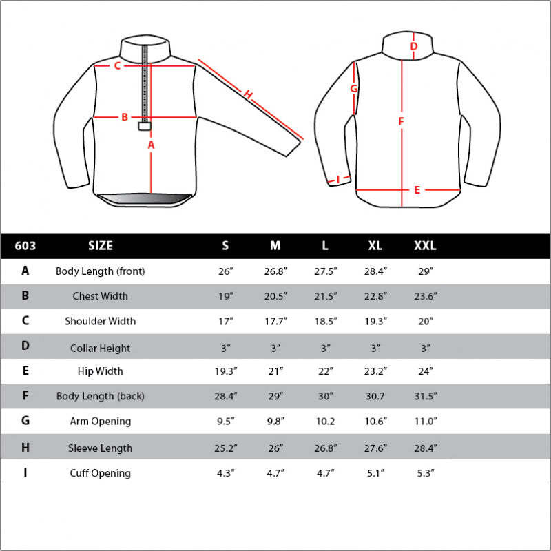 - Mid chest zipper converts to turtle neck