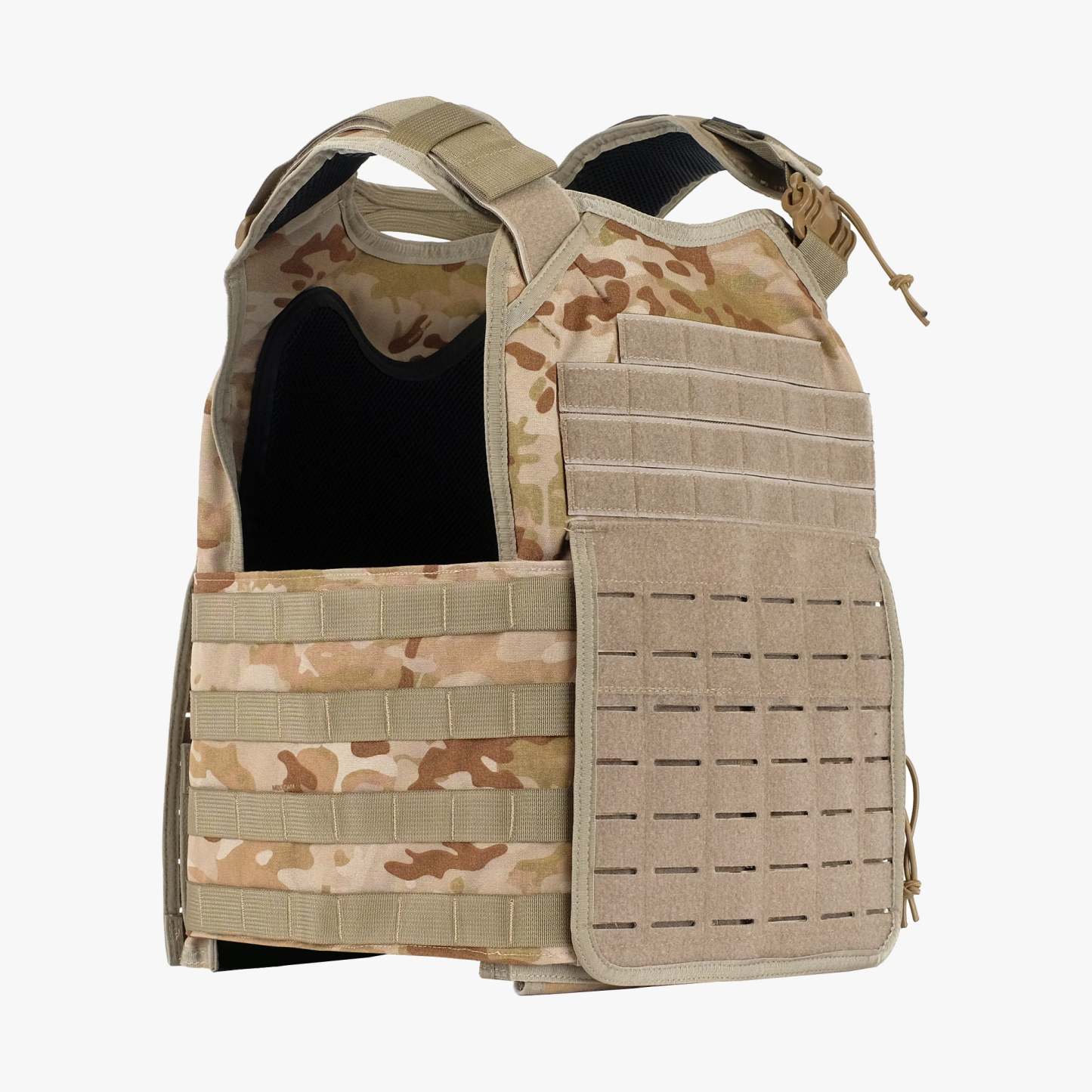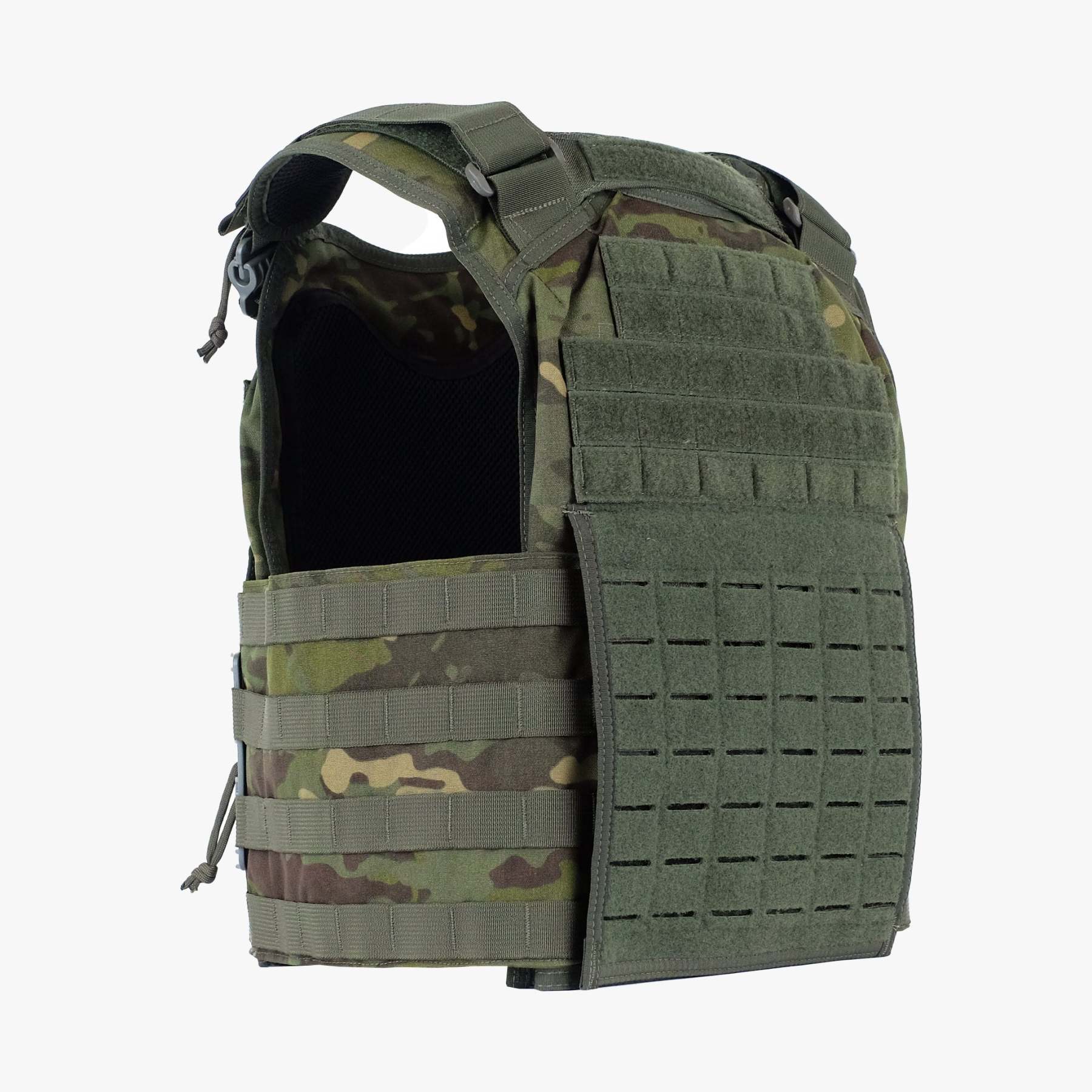 Seamlessly integrated traditional molle webbing and velcro-covered laser-cut molle sections, make carrying a heavy kit just as natural as going lite. A chest placard can be easily attached to the full-field of velcro on the front of the plate carrier, and medical gear, hydration bladders, and more can be added on the rear. Both the outside and inside of the cummerbund feature traditional molle webbing so you can add gear on either side.