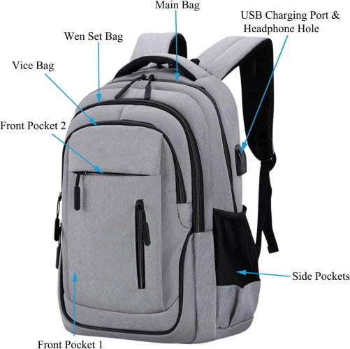USB Charging Port & Headphone Port: With built in USB charger and headphone port outside and built in charging cable inside, this USB backpack provides a more convenient way for you to charge your phone and listen to music while walking. Please note, This backpack does not power itself, and the USB charging port only provides a convenient way to charge.