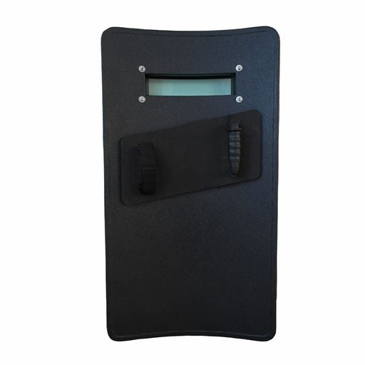 Dimensions of shield: 35.5" (H) x 19.6" (W). Includes ballistic window. Custom inscriptions are available for the front for an additional charge. Strong & durable for tactical and patrol situations Tested to level III (ambient) to resist up to 7.62 FMJ and 5.56mm, and lower. Includes ballistic window tested level III (ambient) to resist up to 7.62 FMJ and 5.56mm, and lower. Integrated handle and arm rope system on back, with comfortable cushion pad for the forearm. Easily fits in most vehicles (trunk or backseat).