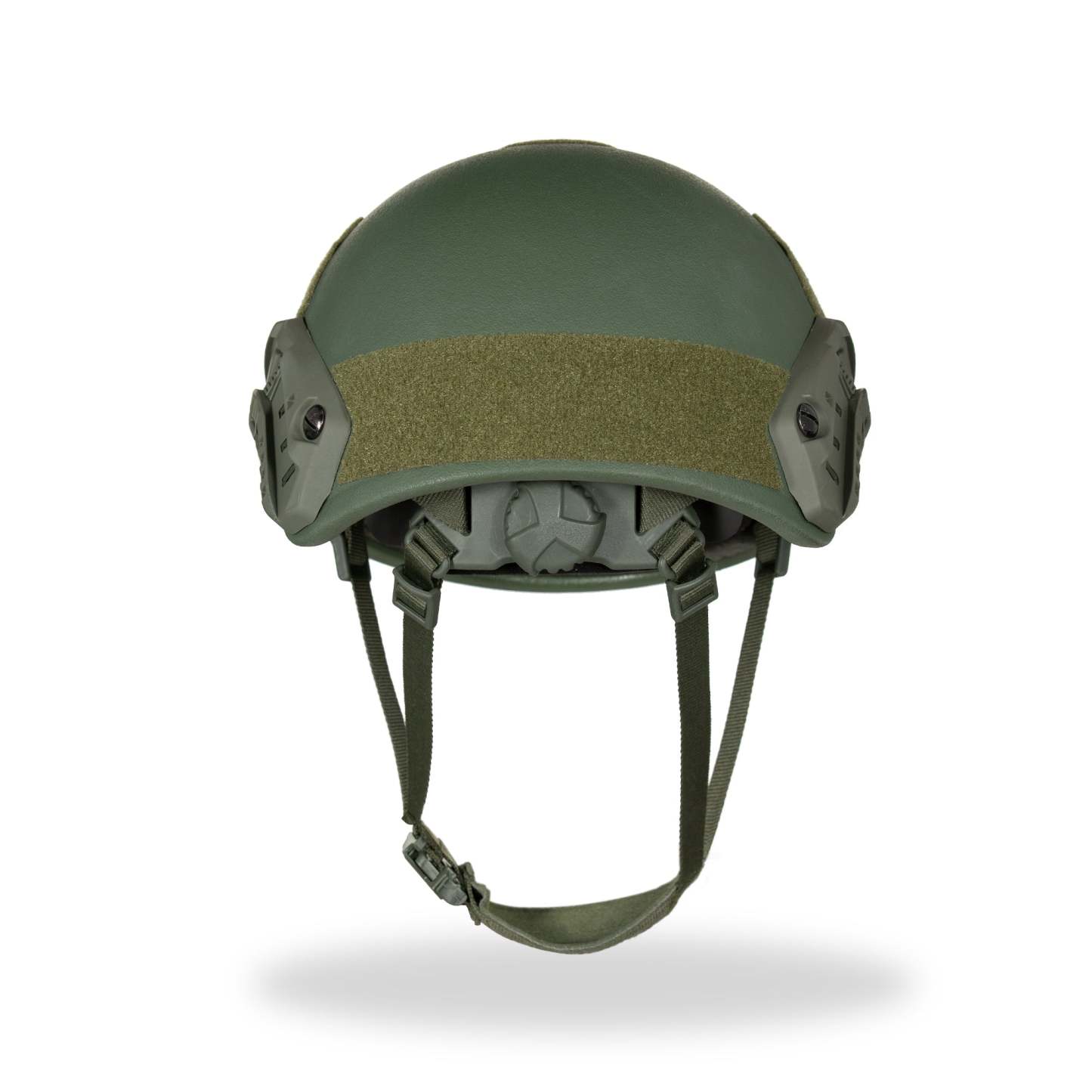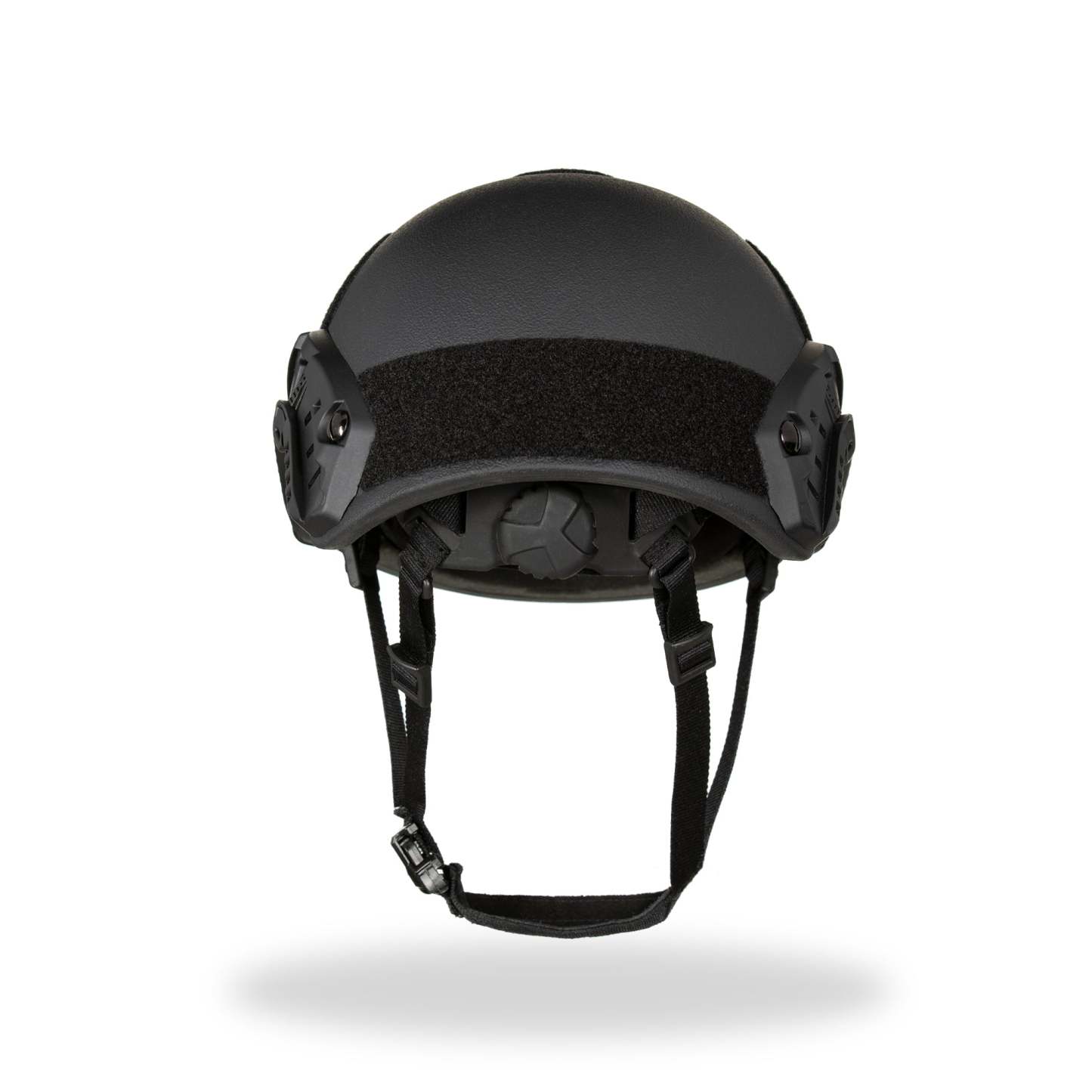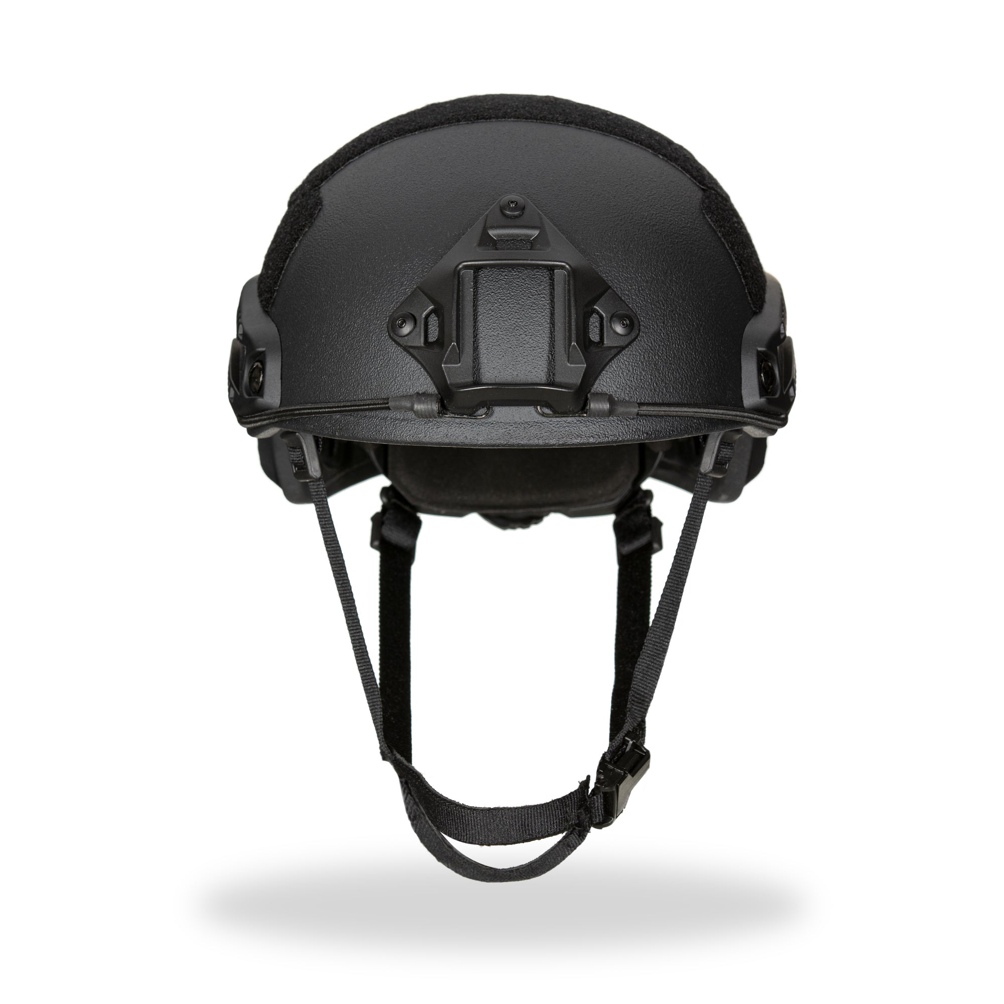 Our High-Cut Helmet includes one pair of attached picatinny side rails, a front mount, and an adjustable ratchet knob system on the interior to fine-tune to each user’s head size.
