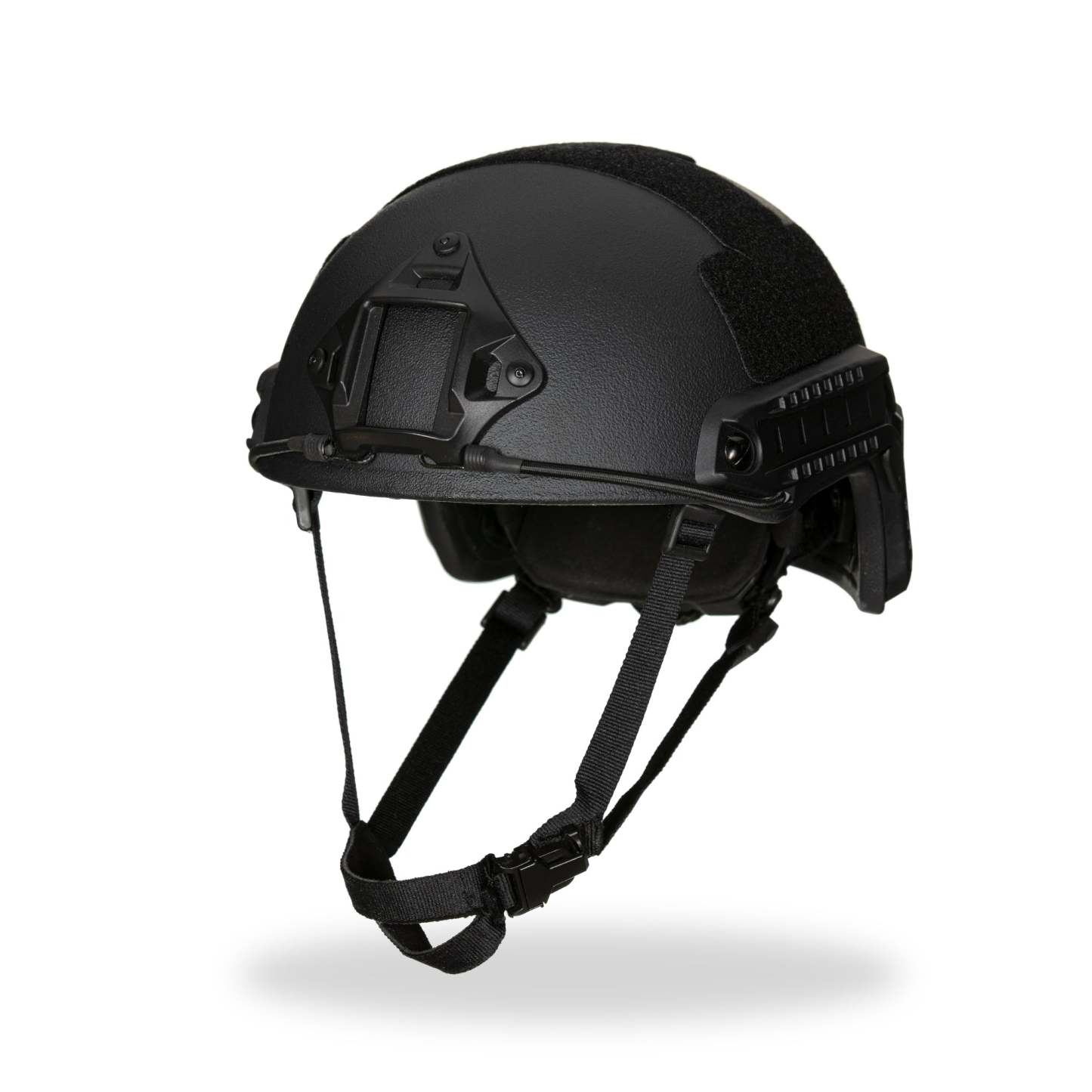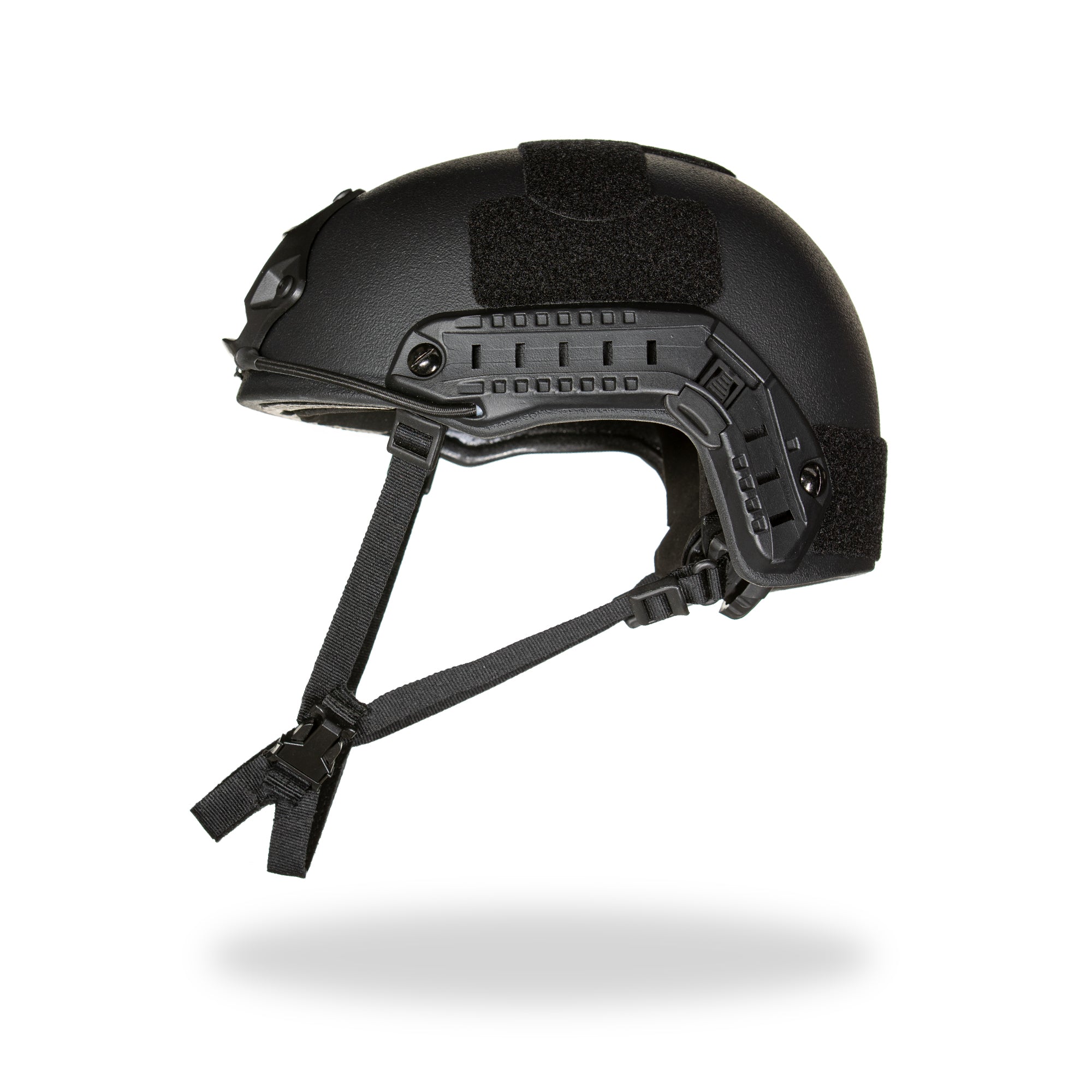 Tested to level III-A ballistic resistance, this lightweight high-cut style bullet-resistant helmet provides strong head protection, and includes an adjustable chin strap. The helmet includes an adjustable ratchet knob to fine-adjust the head size for various users. Includes two picatinny side rails and front NVG mount. Tested to level III-A ballistic resistance (ambient) Tested to STANAG 2920 (V50) fragmentation (ambient)