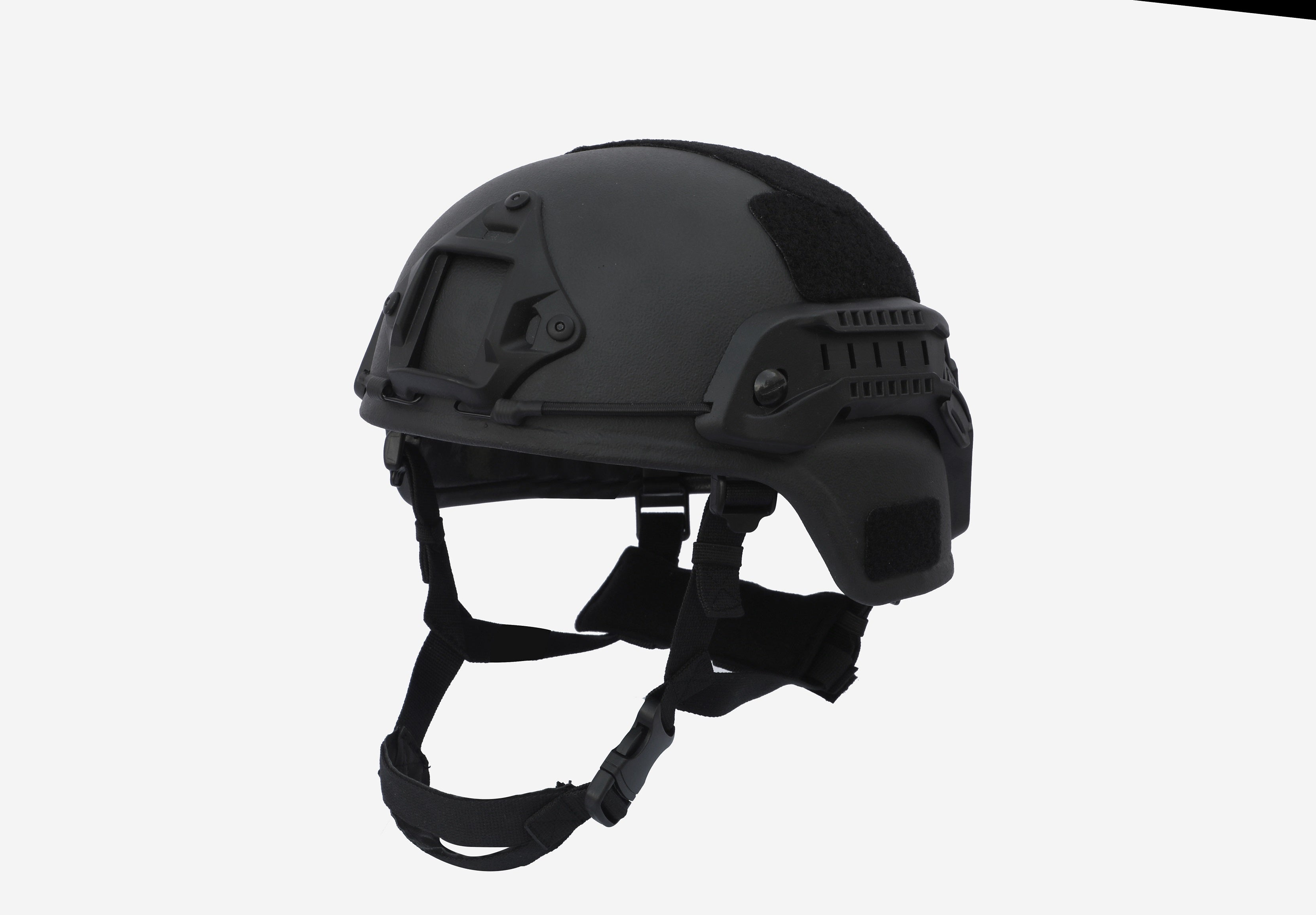 Tested to level III-A ballistic resistance, this lightweight MICH style bullet-resistant helmet provides strong head protection and includes an adjustable chin strap, with a chin cup. The helmet includes two picatinny side rails and optional front NVG mount. Available in S, M, L, and XL. Lightweight & comfortable to wear for long hours Tested to level III-A ballistic resistance (ambient) Tested to STANAG 2920 (V50) fragmentation (ambient) MICH ACH (Advanced Combat Helmet) style design, includes side Picatinny rails (pair) and front NVG mount).