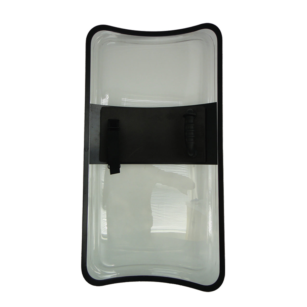 Standard Size with protective hardened black border. Durable anti-riot shield manufactured with strong polycarbonate with enhanced black border for extra durability. Includes handle system. Manufactured with strong UV stabilized polycarbonate, with 95% light transmission. Polycarbonate produced by suction mold technology for extra strength Tested to resist up to 147 joules (J) of impact energy