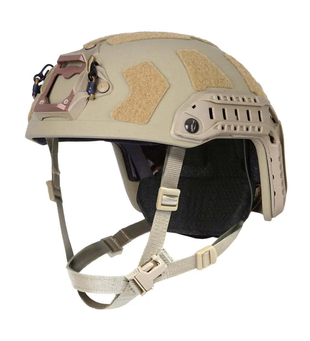 The Ops-Core SF Helmet provides superior protection against blunt impacts and compression testing to meet all specified standards. The helmet utilizes a hybrid composite shell composed of lightweight yet strong materials including Unidirectional Polyethylene and woven Aramid fibers. This combination ensures an even distribution of shock force throughout the shell and offers superior protection against penetration or abrasion forces.
