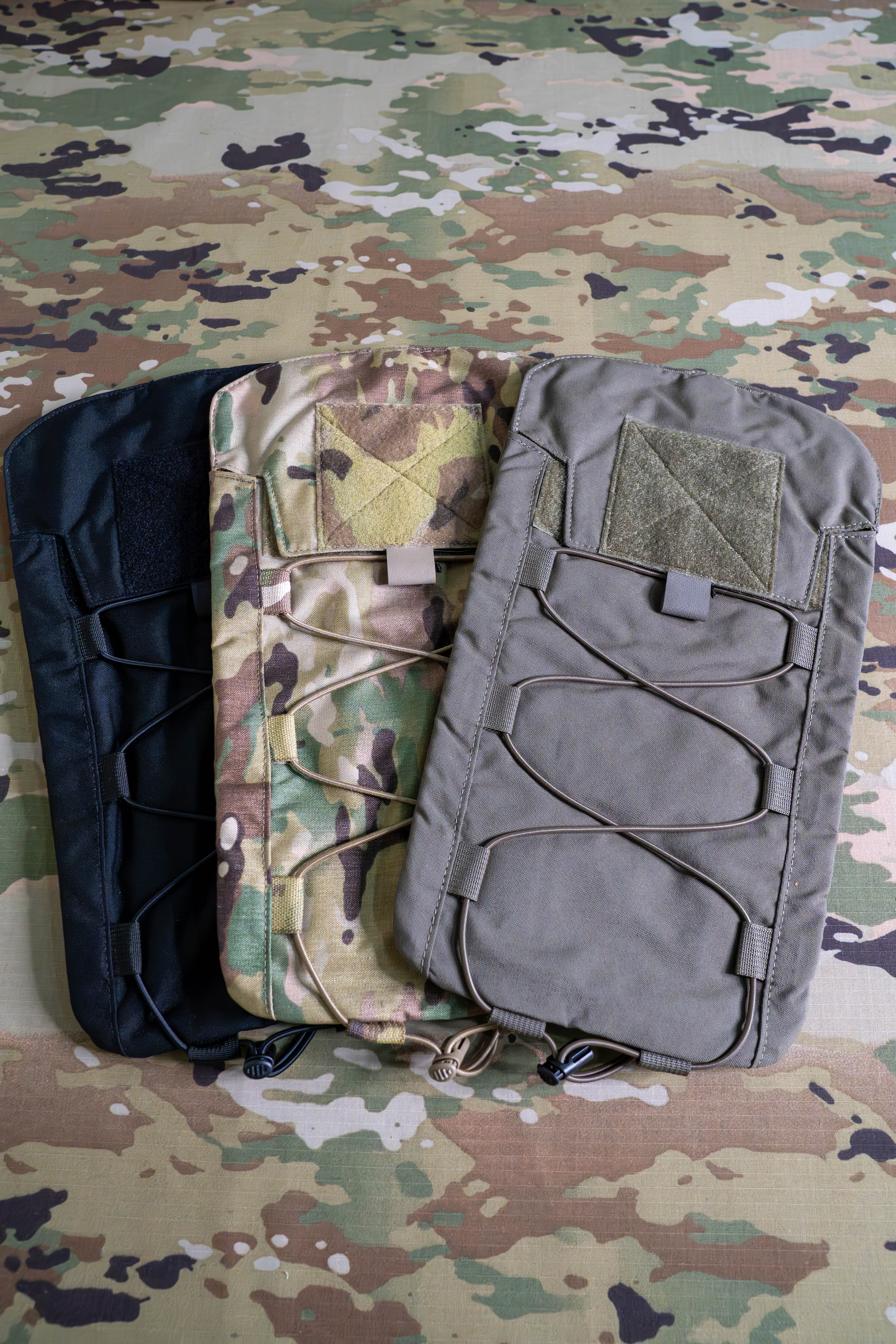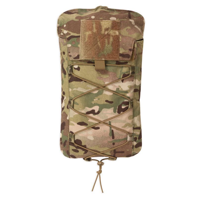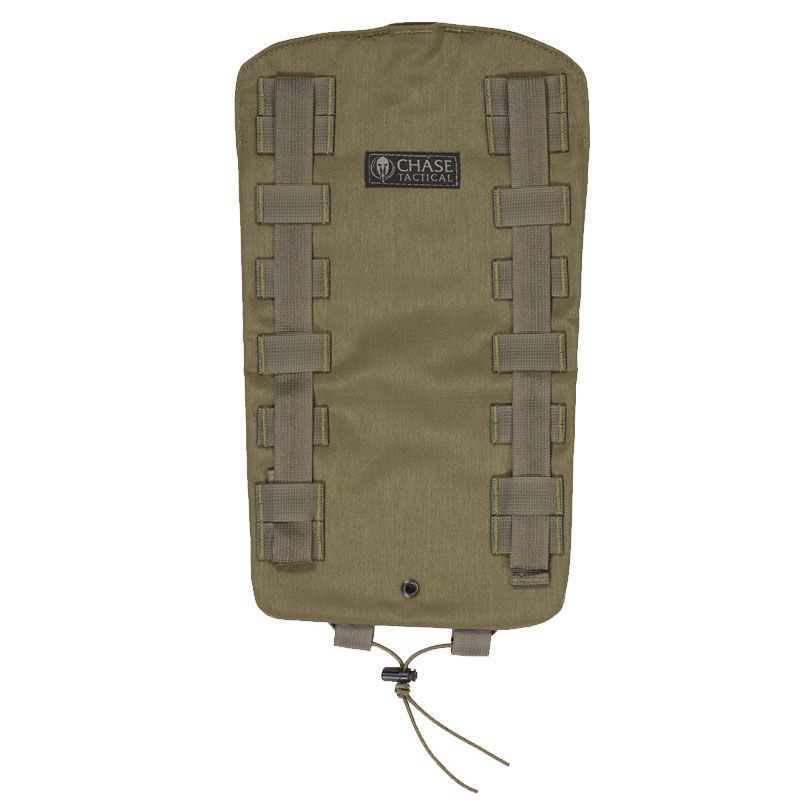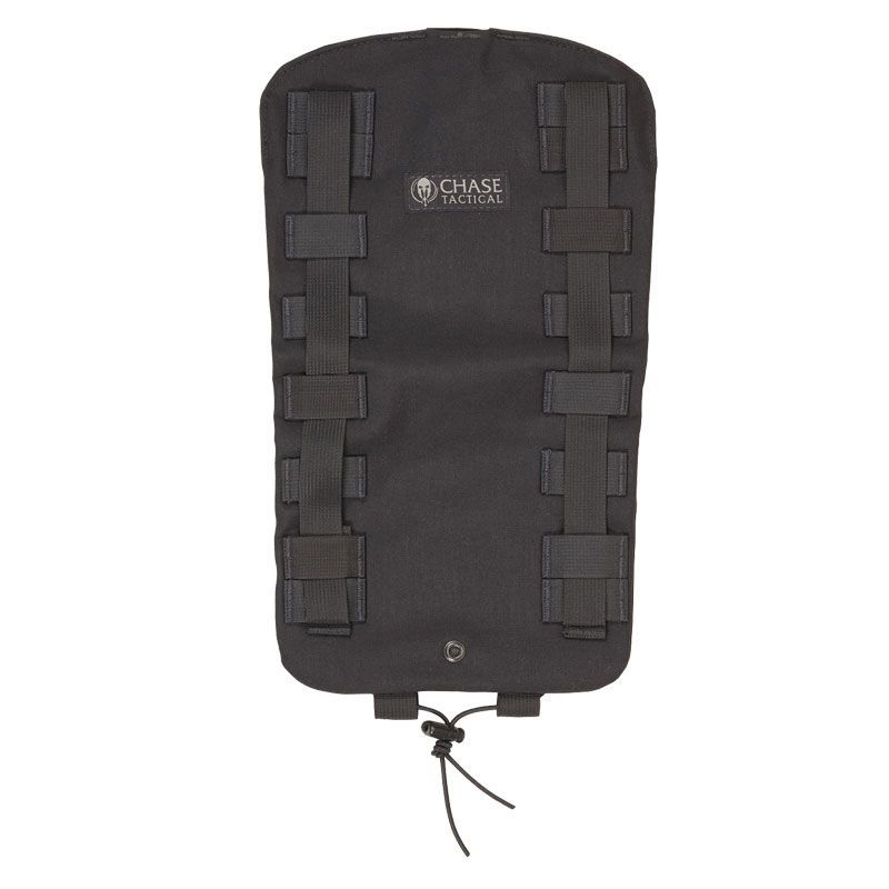 The Chase Tactical Large Hydration Pouch boasts a 3-liter (100 oz) carrying capacity. Bladder not included. Attachable to your plate carrier via MOLLE on the backside, this pouch remains low profile and slim. It offers a large Velcro section on the lid for identification and other patches. The shock cord running down the outside allows for more gear storage and greater organization. With drainage grommets at the bottom of the pouch and being made of 500 D Nylon construction, this hydration pouch is made to stick with you no matter the field conditions. Made in the USA and trusted by military and law enforcement all over.