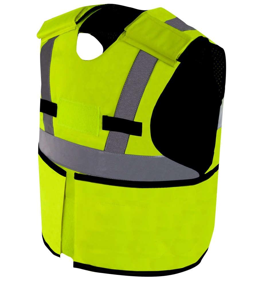 The Vizer body armor ensures that you will be protected and visible. Its reflective panels come in a wide range of colors to ensure that even in the most adverse light and weather conditions the wearer remains in view. The Vizer utilizes protective DuPont™soft armor protective panels to guarantee safety, and a durable Flexothane™ outer cover to keep the wearer visible.