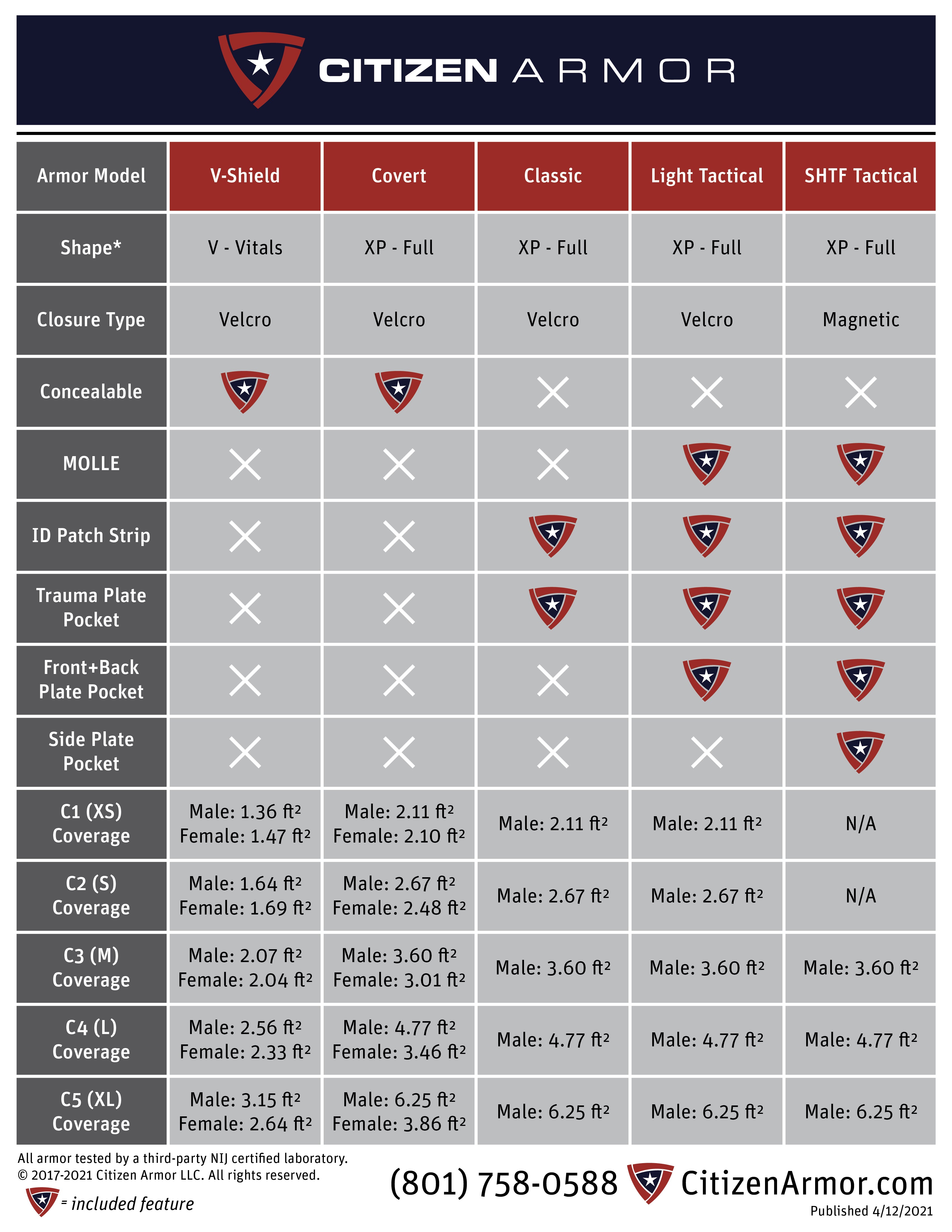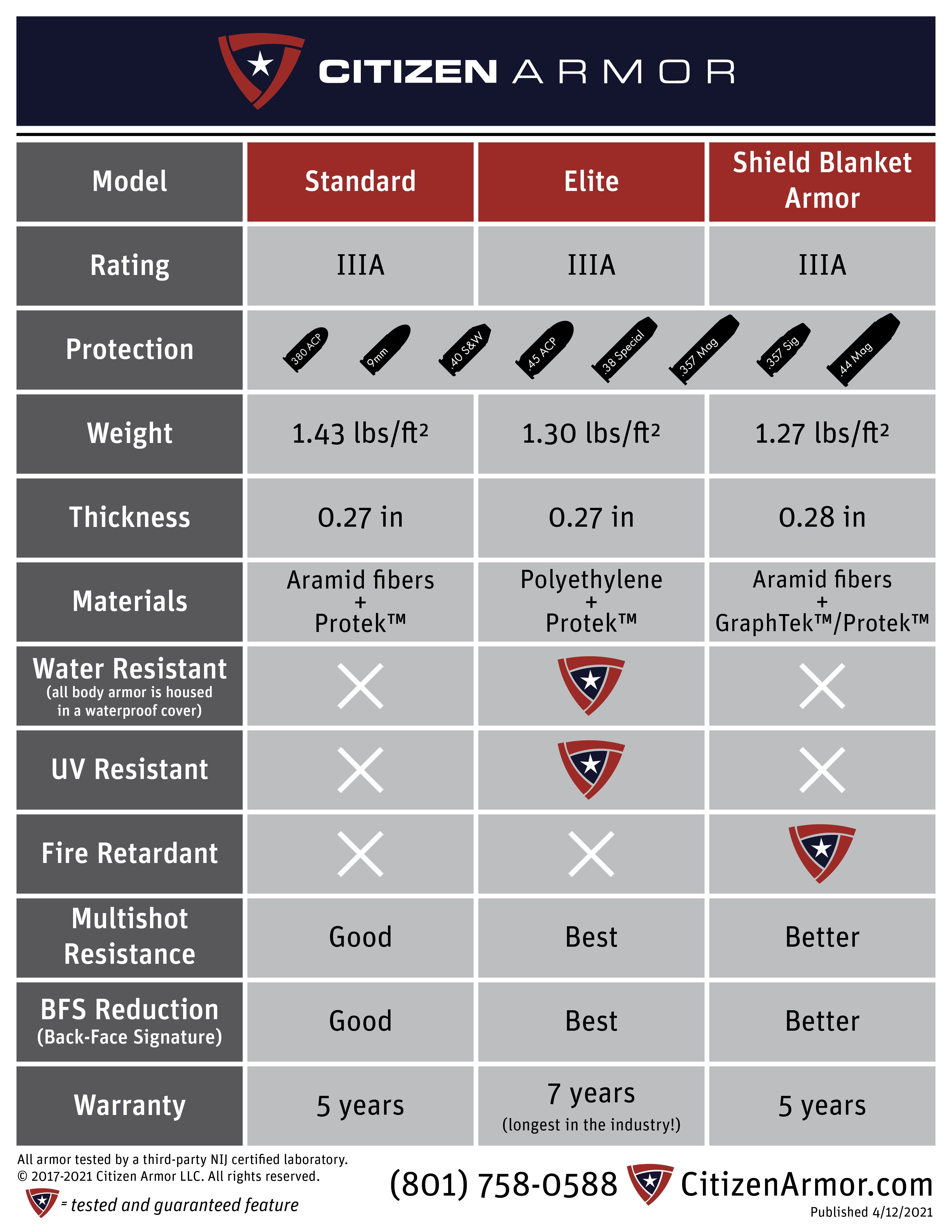 ARMOR LEVEL COMPARISON CHART