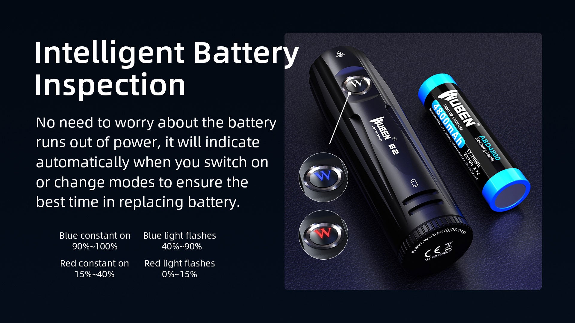 Comes with a lithium-ion rechargeable battery 18650, B2 is also compatible with a 21700 battery, you don’t have to worry about running out of power.
